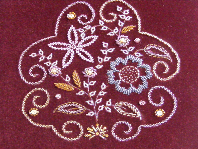 Velours imprimé, toutes fournitures comprises, Fiche technique et photo. 35 € + 4.32 € frais de port. A commander sur Cathy.acloque@free.fr